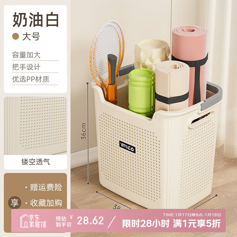 稻草熊瑜伽垫收纳筐健身器材运动器械收纳篮家用羽毛球拍置物架收纳神器 奶油白【大号】 【加厚材质/大容量/无异味】