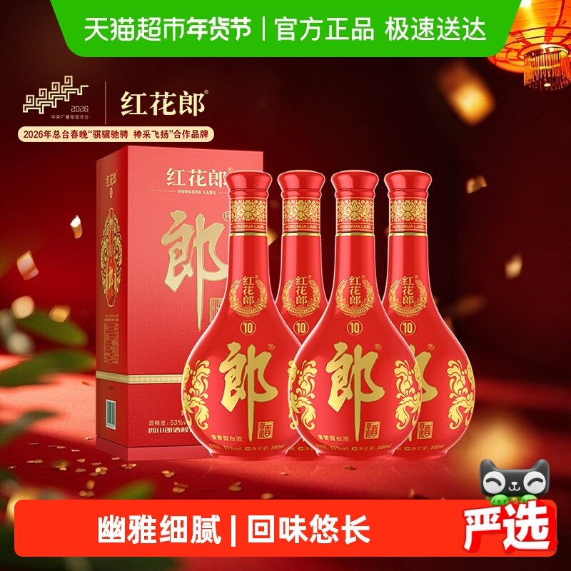 郎酒红花郎(10)酱香型白酒53度500ml*4瓶正品婚宴送礼含礼袋