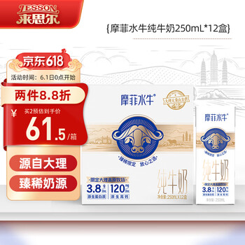 来思尔(LESSON)摩菲水牛奶礼盒全脂纯牛奶250ml*12盒 9.5g乳蛋白/盒送礼