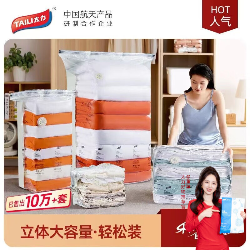 太力加大加厚免抽气压缩袋搬家行李打包袋 8件套【2特大4中立体2大手卷】