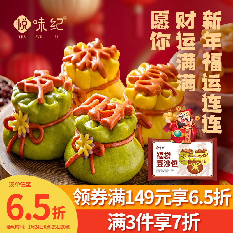 悦味纪 恭喜发财福袋豆沙包480g 6只 山东花饽饽新年年货年夜饭花馍馒头