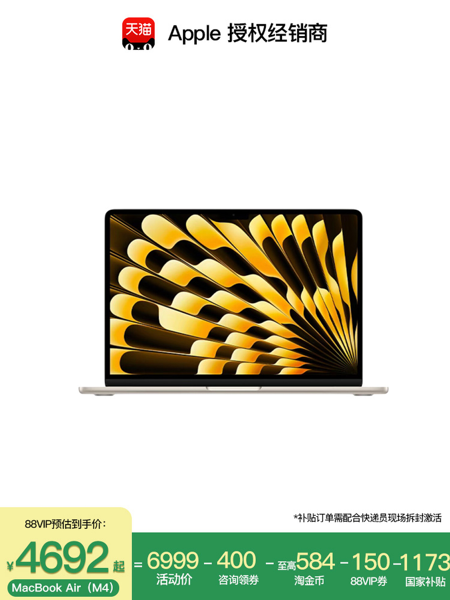 【晒单返20/国家补贴20%/咨询领券】Apple/苹果 MacBook Air 13英寸 M4芯片 笔记本电脑 官方旗舰店 国家补贴
