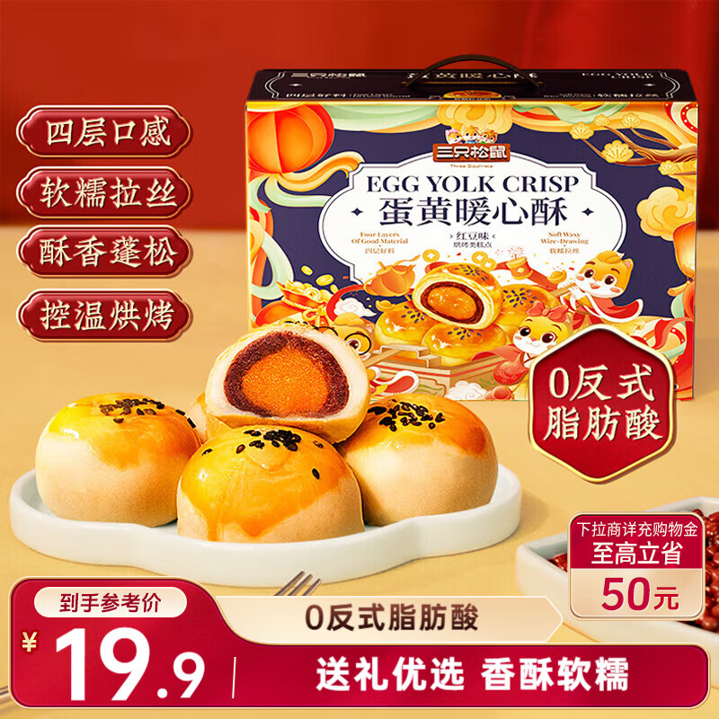 三只松鼠蛋黄酥礼盒800g 红豆味约16枚雪媚娘礼盒休闲零食团购新年送礼