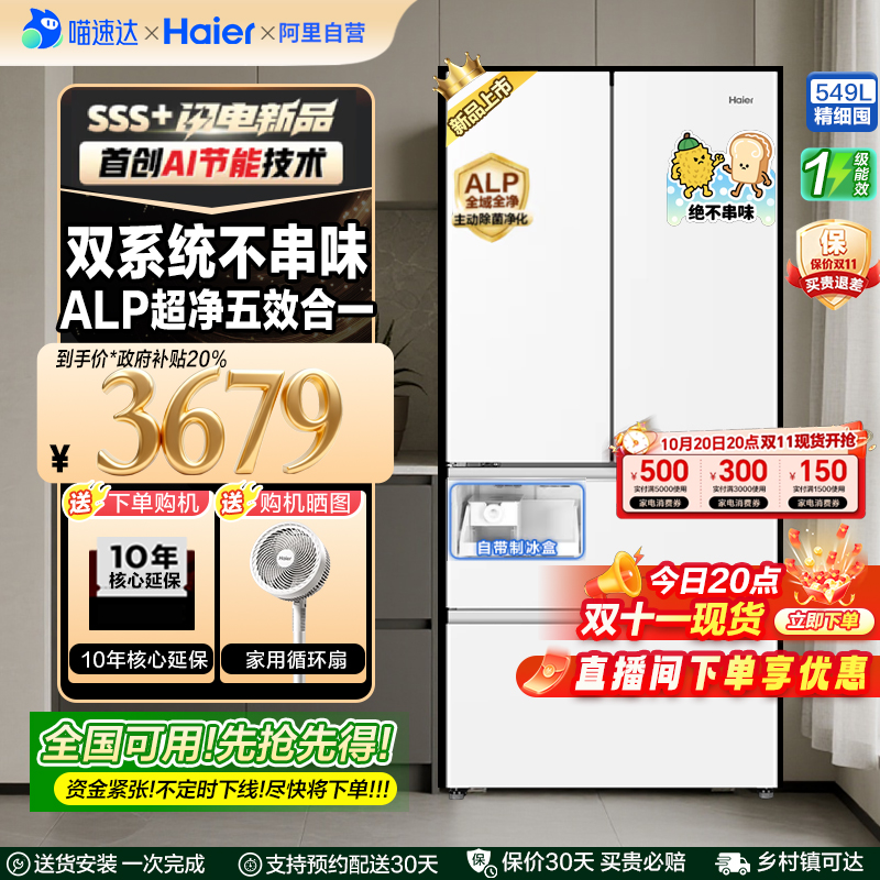 【2025新款】国补海尔双系统双循环法式多门549升大容量制冰冰箱