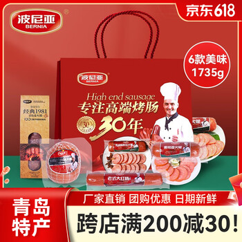 波尼亚(BERNIA)火腿烤肠送礼大礼包伴手礼袋至臻礼袋端午礼盒送礼长辈父母家长 (无礼盒)手提袋+产品1.75kg