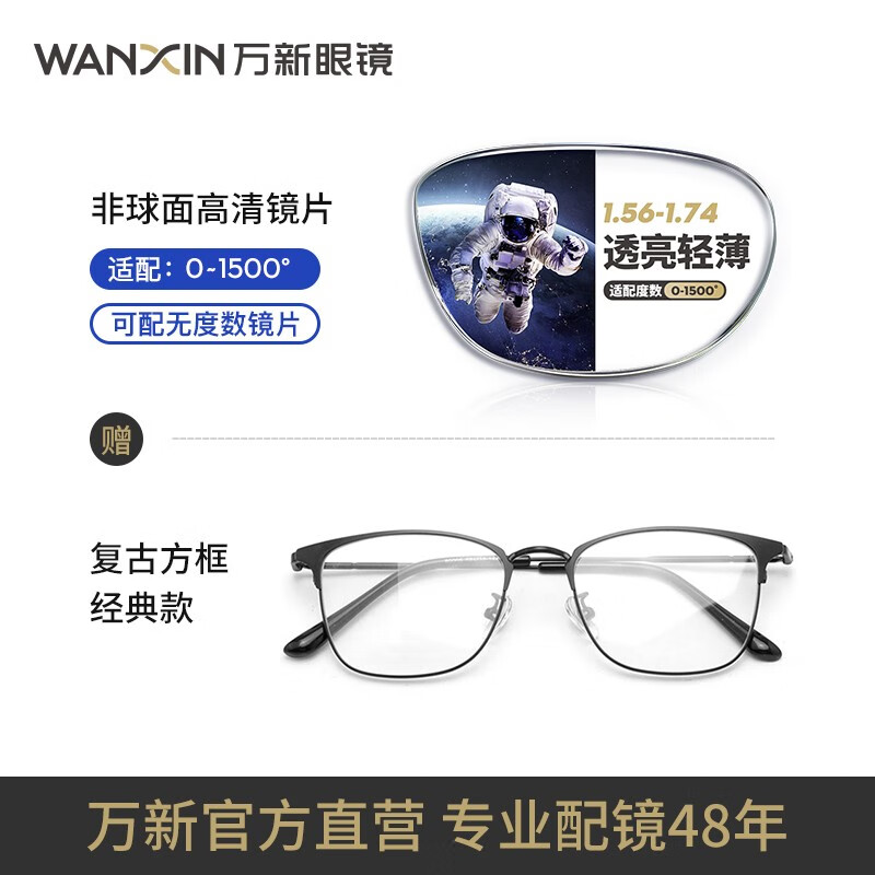 万新(WAN XIN) 万新近视眼镜配眼镜框高清1.60非球面现片男女多种框型选择 金属-全框-80008C1-黑色 1.60MR-8非球面镜片(近视超薄)