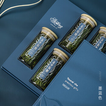 绿满堂太平猴魁特级绿茶正宗手工捏尖茶叶兰花香精美玻璃罐礼盒装200g 深蓝高档猴魁礼盒 200g*1盒