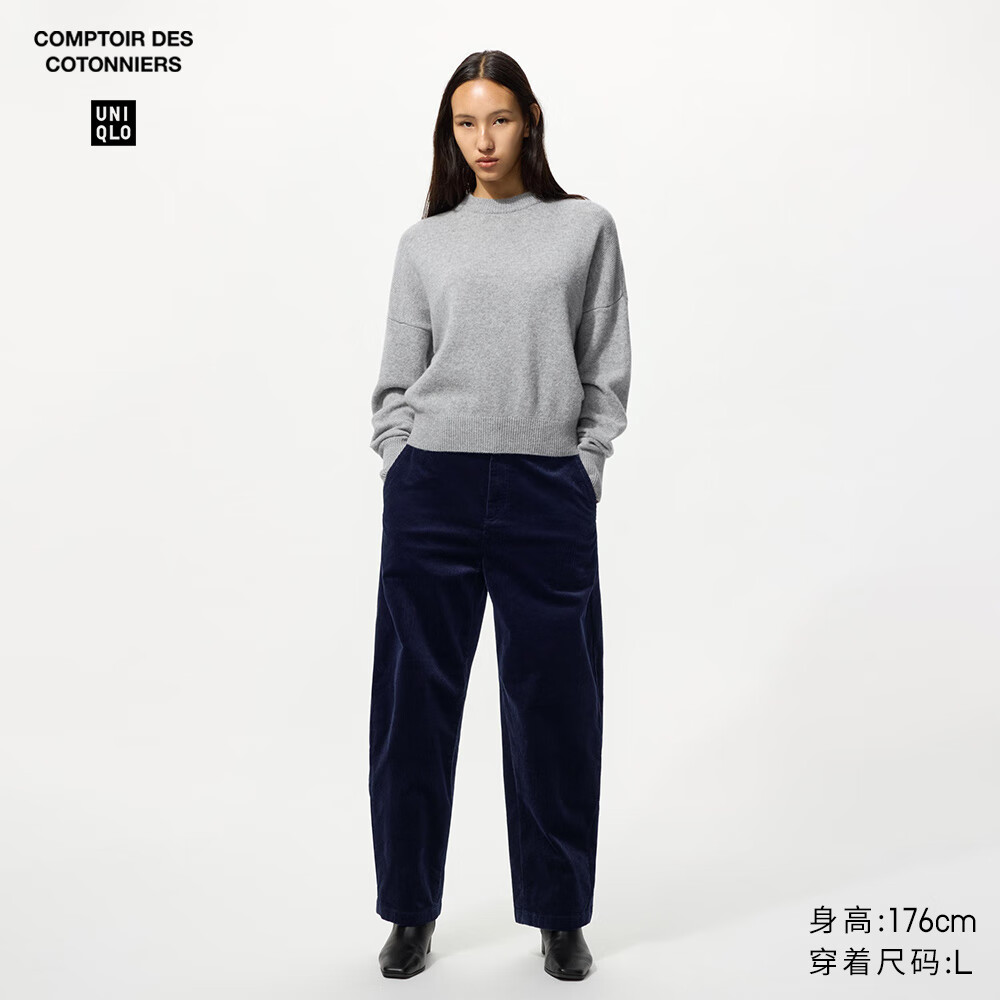 优衣库合作款/女装灯芯绒廓形长裤/弯刀镰刀裤子479663 69 藏青色 2XL /165/84A