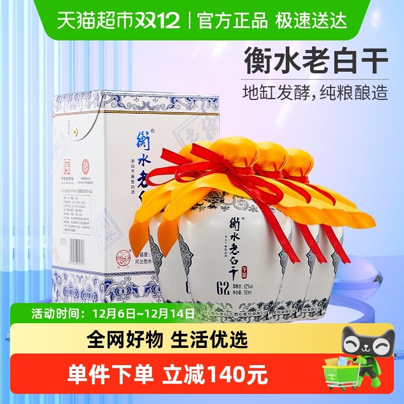 衡水老白干青花手酿老白干香型62度 500ml*4瓶整箱装口粮白酒