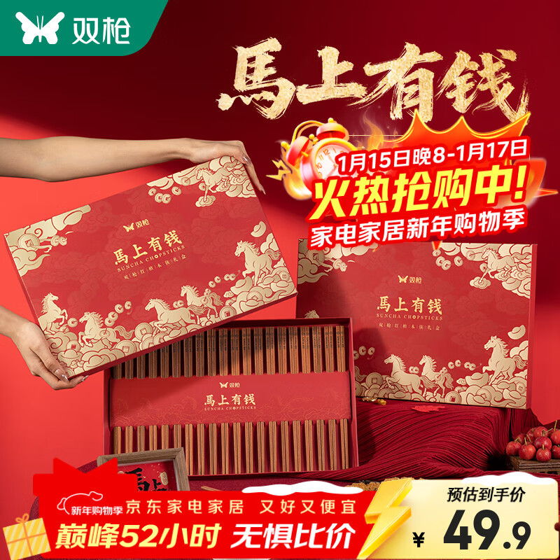 双枪马上有钱红檀木筷子家用礼盒装新年春节高档中式餐具礼品 【马上有钱】红檀木礼盒筷 20双