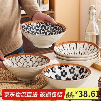 几物森林 日式8英寸拉面碗斗笠碗家用大碗餐具大号汤碗泡面碗吃面条 4只装
