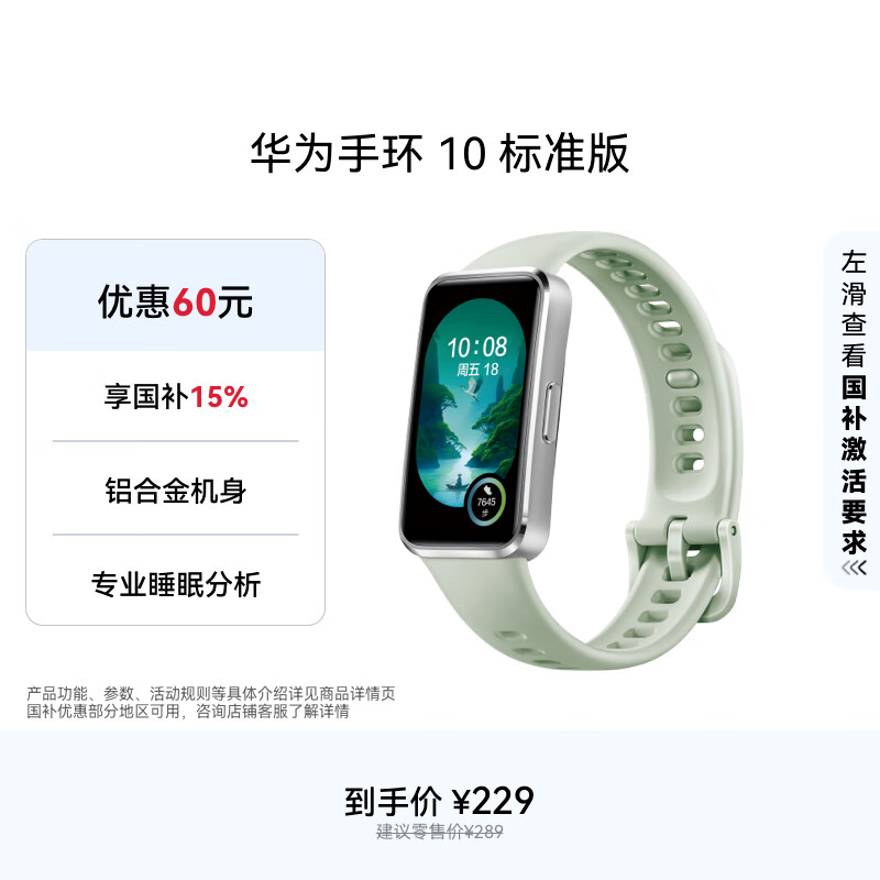 华为 手环10 标准版 原野绿 氟橡胶表带智能运动手环专业睡眠分析情绪健康铝合金机身华为手环9升级