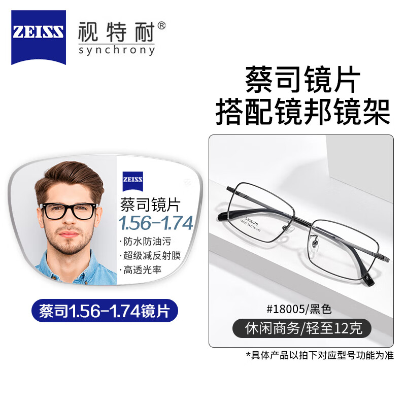 蔡司系列高清防水防污耐磨防刮镜片可配镜架TK1 18005黑色 配蔡司旗下视特耐1.67超薄非球面