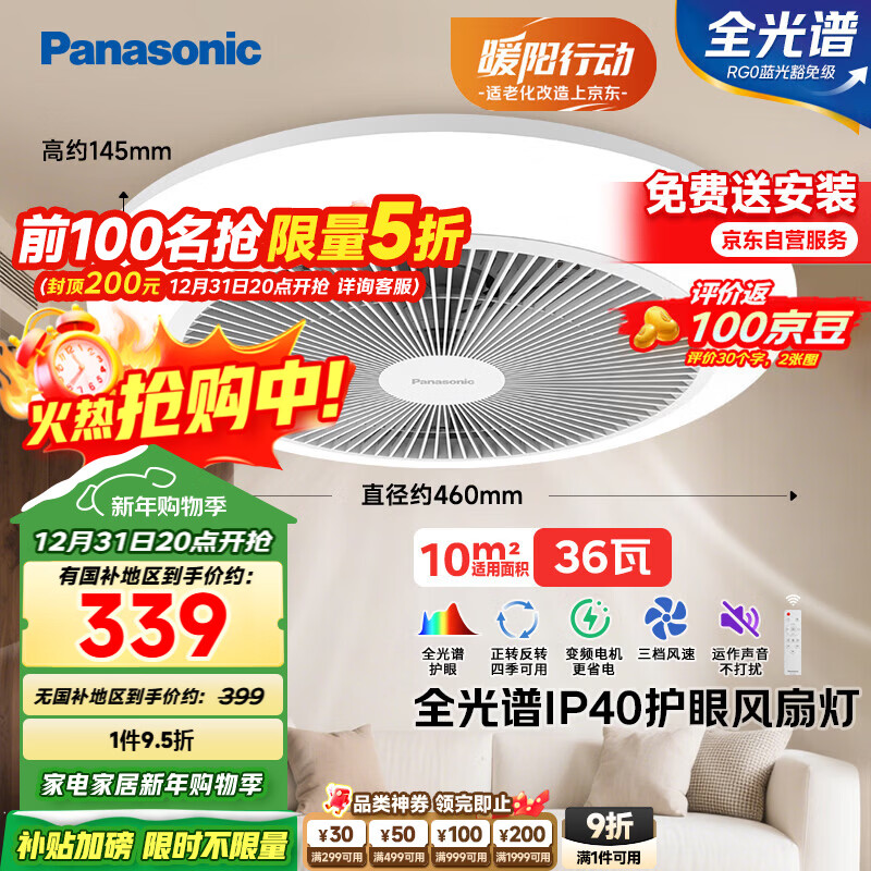 松下(Panasonic)风扇灯 全光谱 IP40 36瓦 防眩护眼 LED照明
