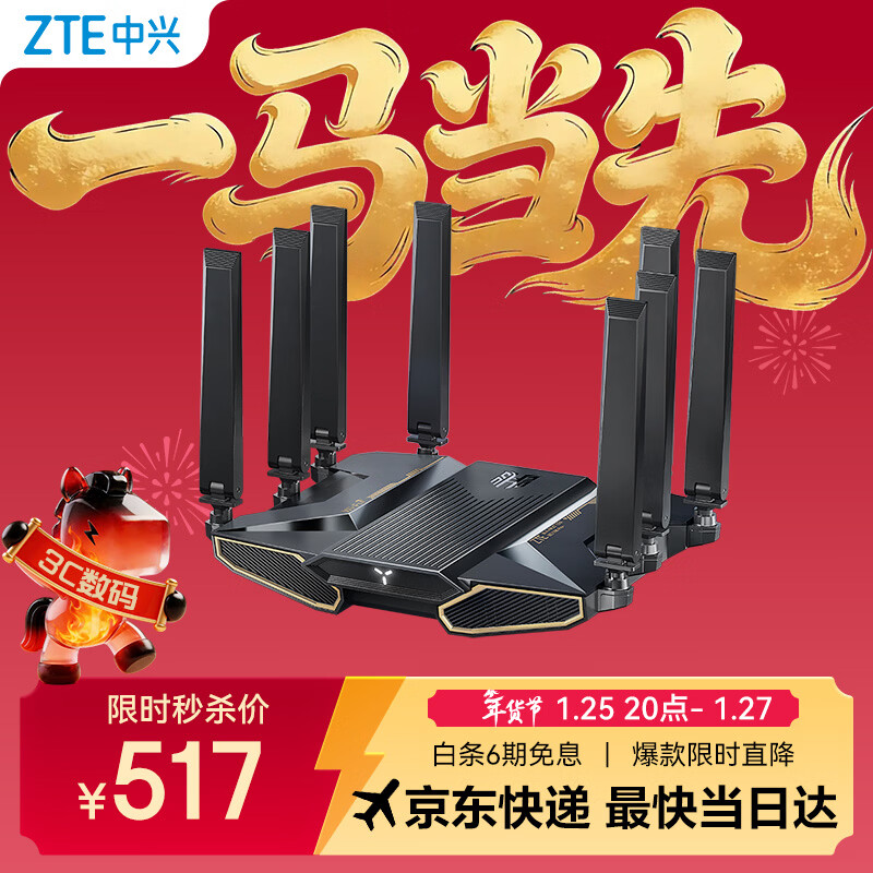 中兴(ZTE)【问天】BE7200Pro+ WiFi7家用无线路由器 双频聚合游戏加速 8颗独立放大器 满血2.5G网口穿墙王