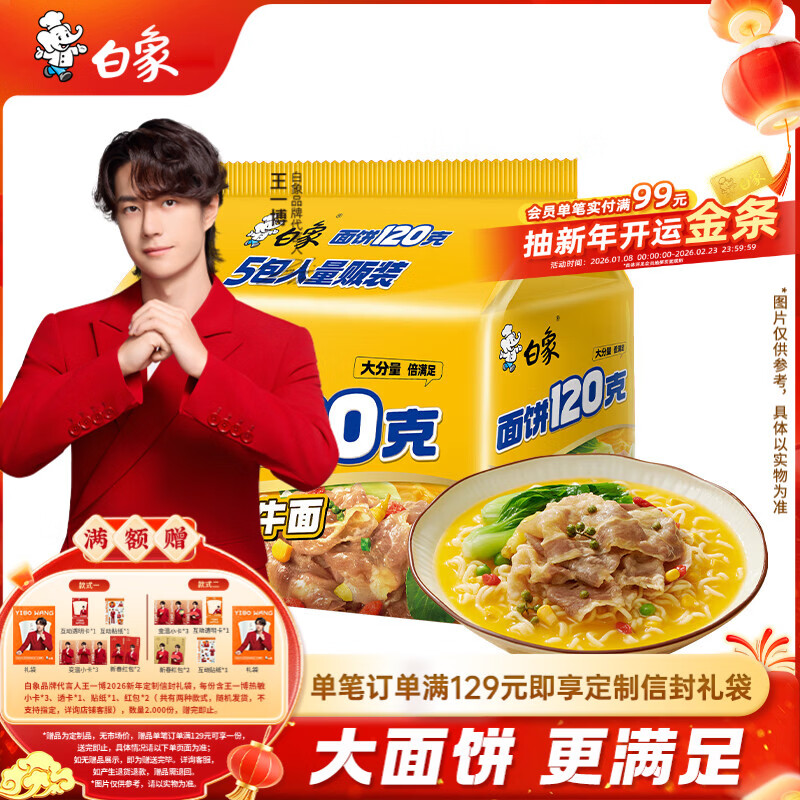 白象 方便面 大面饼120克金汤肥牛面五连包含料包共144g*5袋 泡面速食