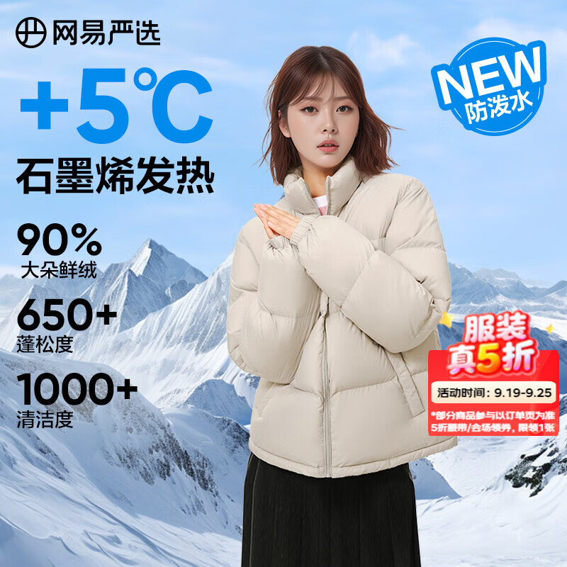 网易严选 25新品90鸭绒超蓬羽绒服休闲面包服石墨烯保暖轻量抗菌防泼水 A款25秋冬-卡其米-立领 S (165/88A)