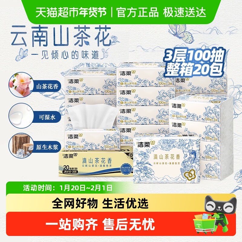 【下拉享优惠】洁柔云南滇山茶花香抽取式抽纸100抽*20包原生木浆