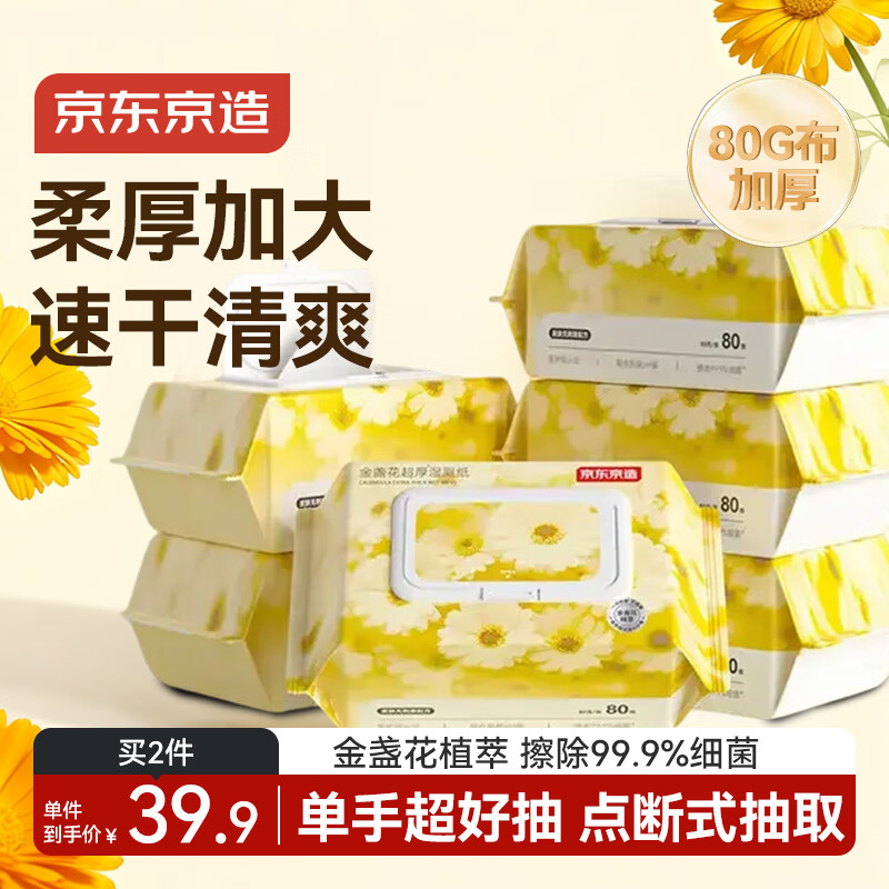 京东京造金盏花湿厕纸80抽*6大包 家庭装加厚柔卫生厕纸擦屁股私护湿纸巾