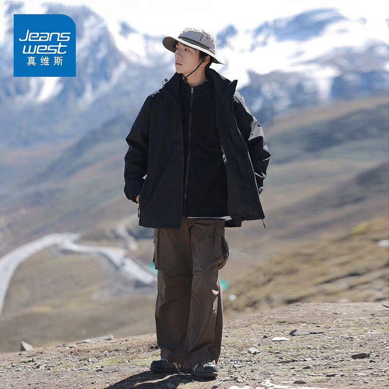 真维斯(JEANSWEST)冲锋衣秋冬新款防风防水高级感夹克外套可拆卸男女款户外登山服装 单件春秋款 黑色 2XL