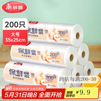 美丽雅 保鲜袋 一次性点断式食品级厨房家用厚实塑料食品冰箱分装袋子 【大号】点断式保鲜袋-200只