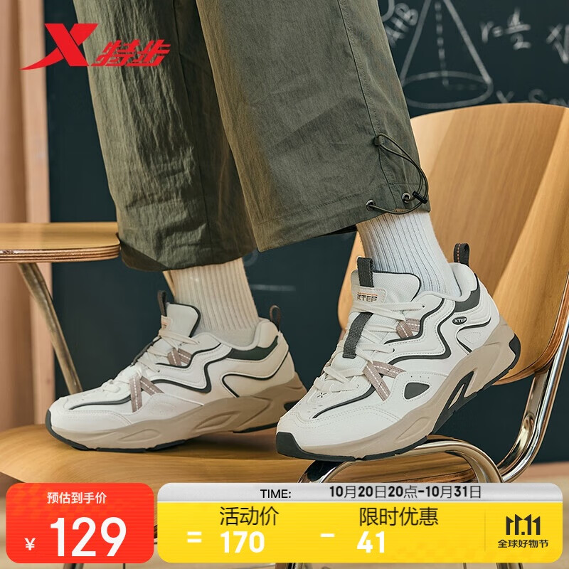 特步男鞋赤壁3.0冬季保暖户外运动休闲鞋老爹鞋 余白灰/蟹壳青