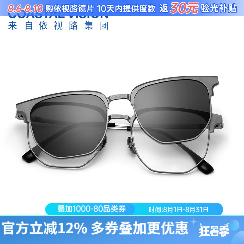 依视路磁吸眼镜男款偏光太阳镜三合一超轻钛光学定制镜架防强光CVF4128 枪色 镜框+依视路膜致防蓝光现片1.60