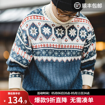马登工装 美式复古费尔岛提花毛衣男春季厚实保暖高领针织衫套头上衣 灰蓝色 S