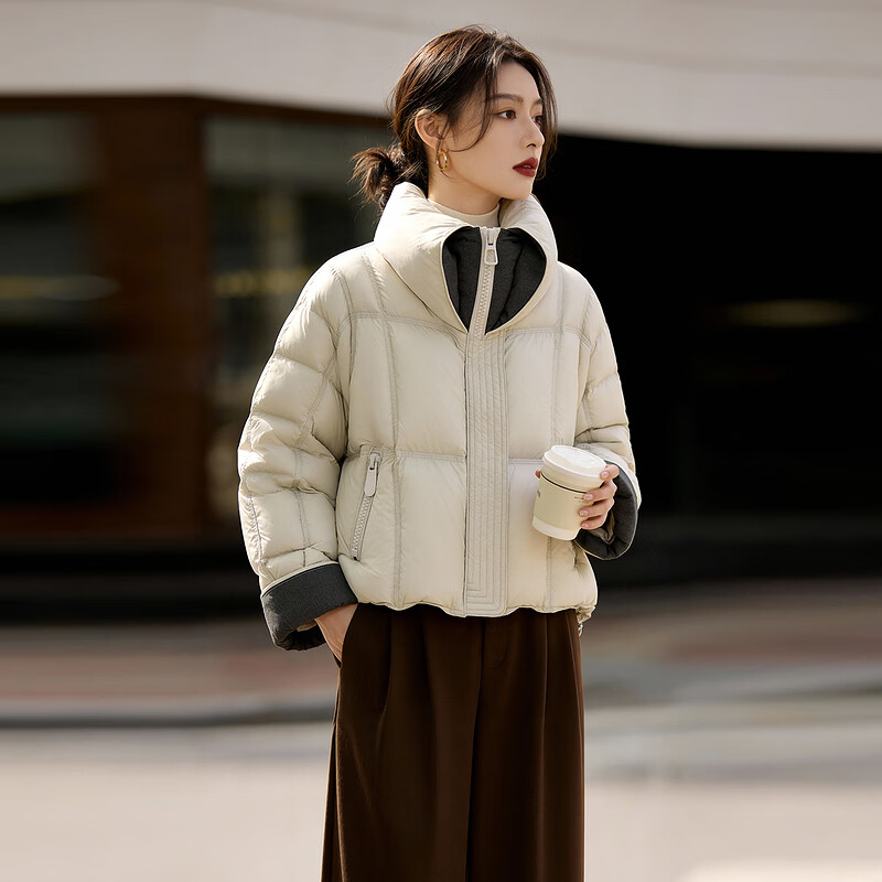 百家好(Basic House)Basic House/百家好90白鸭绒立领连帽短款羽绒服女冬时尚保暖外套 米色 M