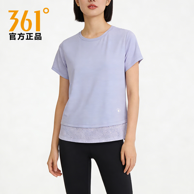 361°运动短袖T恤女款2026夏季新款运动休闲透气速干款短袖上衣女士 苏菲紫(花灰) L (170)