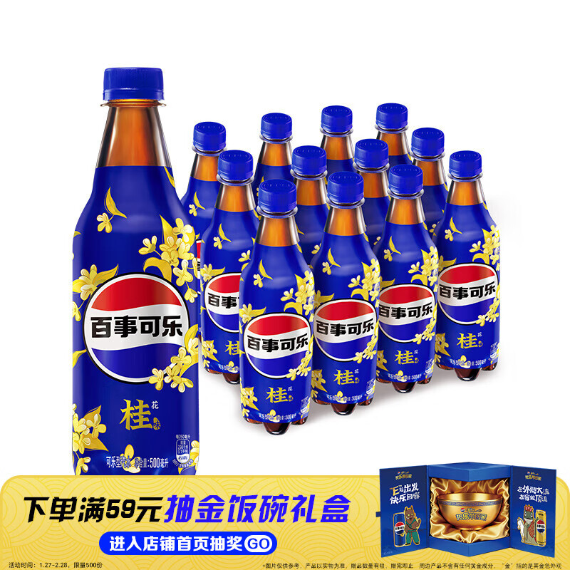 百事可乐Pepsi 太汽系列 桂花味 碳酸饮料汽水 500ml*12瓶 整箱装