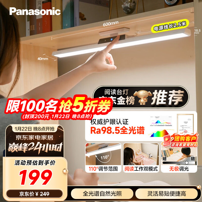 松下(Panasonic)高照度护眼台灯全光谱壁挂式AAAA级护眼 书桌上下铺学习灯酷毙灯