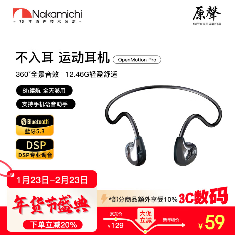 Nakamichi中道【开放不入耳丨骨传导概念】头戴挂耳式蓝牙耳机开放式真无线不入耳舒适运动跑步耳夹式耳机 OpenMotion Pro