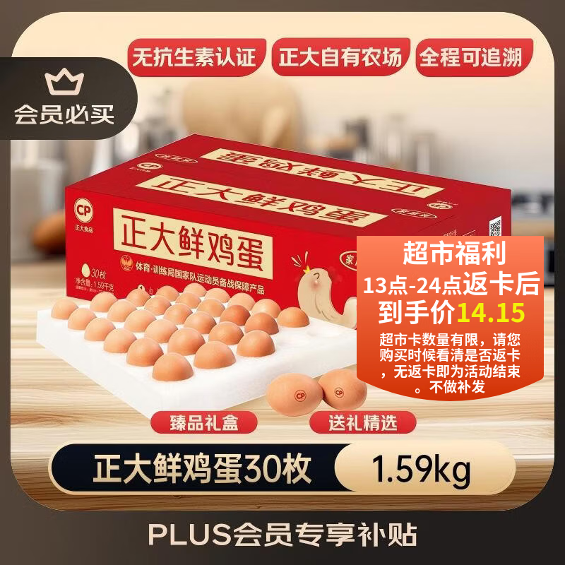 正大食品(CP)鲜鸡蛋年货节礼盒装30枚 Plus联名款 3.18斤 源头直发