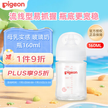 贝亲(Pigeon)婴儿宝宝玻璃奶瓶 防胀气奶瓶 第3代 宽口径自带奶嘴SS号160ml