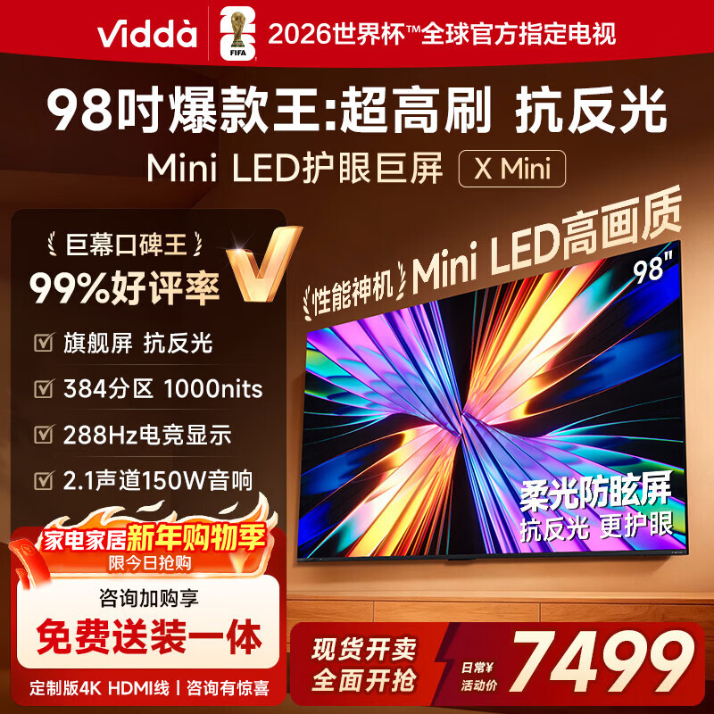 Vidda X Mini 98英寸海信电视 Mini LED 288Hz柔光防眩屏 100吋以旧换新家电国家补贴液晶电视机98VX3Q