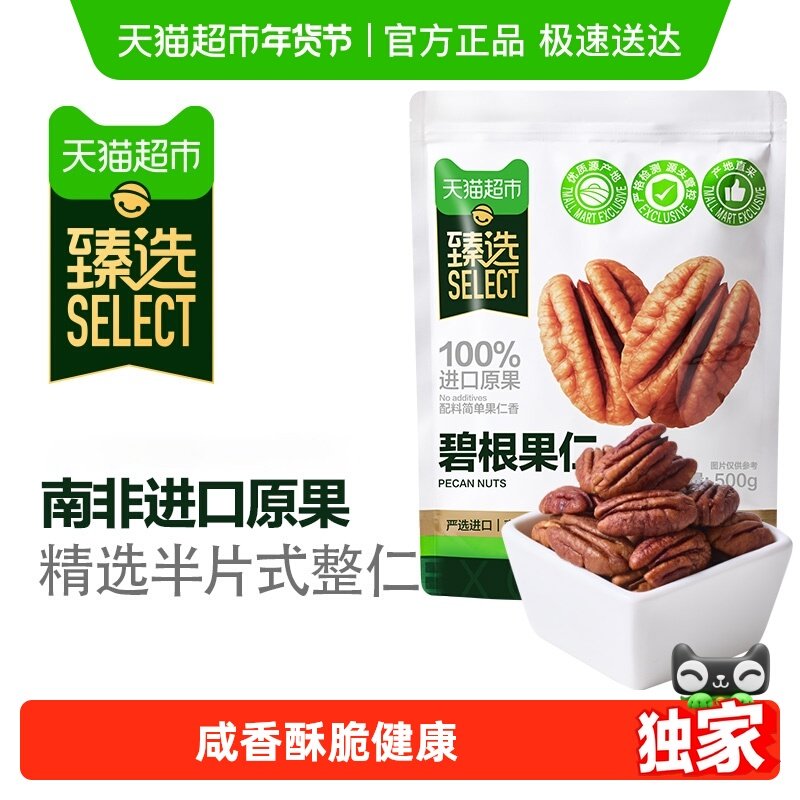 臻选 碧根果仁500g袋装独立小包新货整颗烘焙坚果休闲零食便携