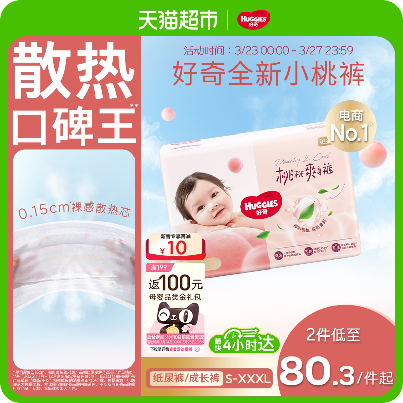 【爆款装】好奇铂金小桃裤纸尿裤S-XL拉拉裤XL-3XL超薄透气尿不湿