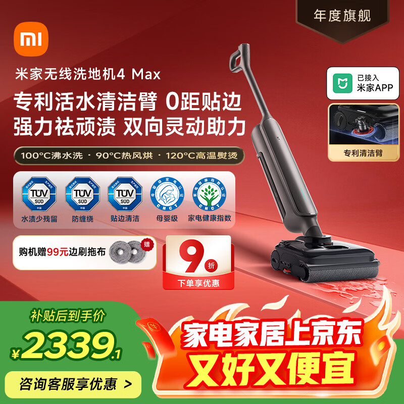 米家【米家爆款单品】小米洗地机4Max 创新智能0贴边 23kPa吸力双向助力扫地吸拖一体躺平防缠洗地机