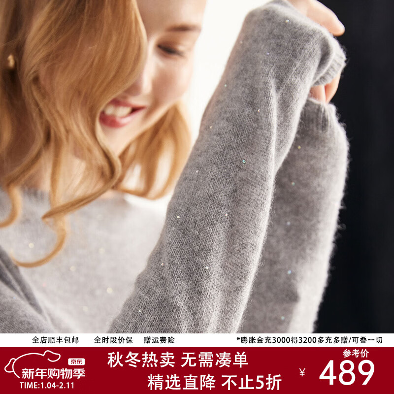 帕罗(PALUOPO)100%纯羊绒秋冬2025新款圆领纯色套头针织打底衫毛衣ET20008R 浅灰 L 165/105