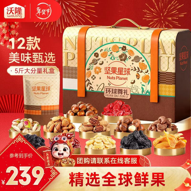 沃隆坚果礼盒开心果碧根果年货礼盒团购送礼每日坚果炒货休闲零食礼包 【丰富18袋】2.5kg坚果星球环球尊礼