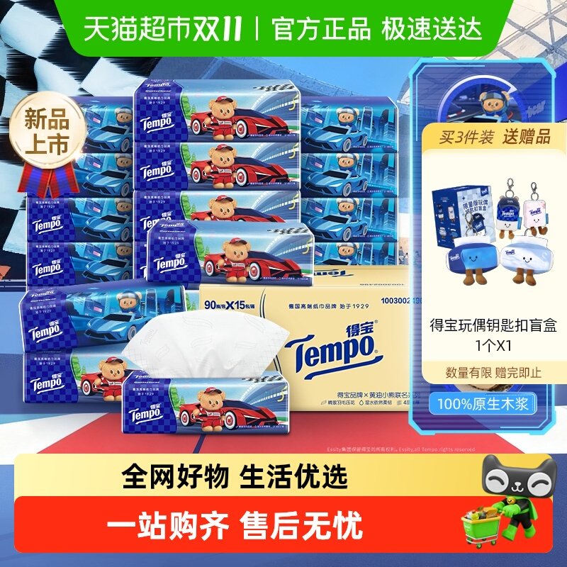 Tempo/得宝黄油小熊/博物馆名画联名四层无香抽纸家用箱装纸巾