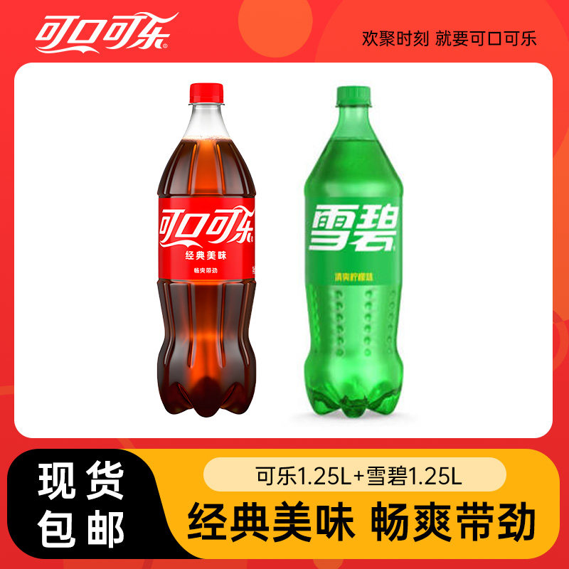 可口可乐1.25L+雪碧1.25L组合大瓶装碳酸饮料家庭装正品包装包邮
