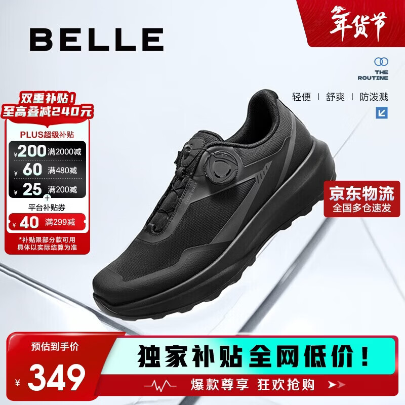 百丽厚底健步鞋男25秋旋钮扣防泼溅耐磨休闲运动鞋A2123CM5 烟晶黑 40