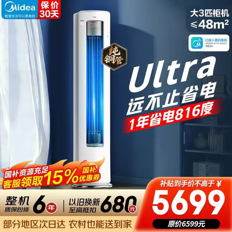 美的(Midea)空调 酷省电Ultra 新一级能效 AI酷省电技术 客厅立式柜机变频冷暖家用节能静音以旧换新 酷省电Ultra 3匹