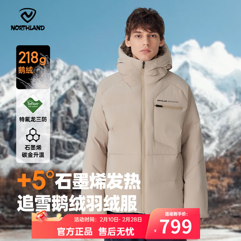 诺诗兰(NORTHLAND)秋冬户外男女羽绒服防寒保暖可升温三防高蓬鹅绒羽绒外套面包服 悬崖卡其色 XL (175) 120-140斤 卡码拍小