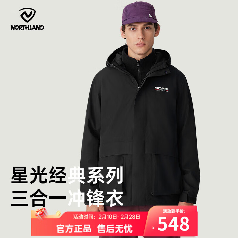 诺诗兰【伊吾】秋冬户外男女三合一抓绒冲锋衣防水三防徒步硬壳冲锋衣 纯黑色-06E男 170