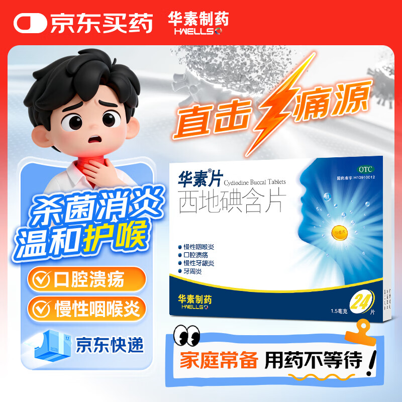 华素片 西地碘含片 1.5mg*24片 用于慢性咽喉炎 口腔溃疡 慢性牙龈炎 牙周炎润喉糖