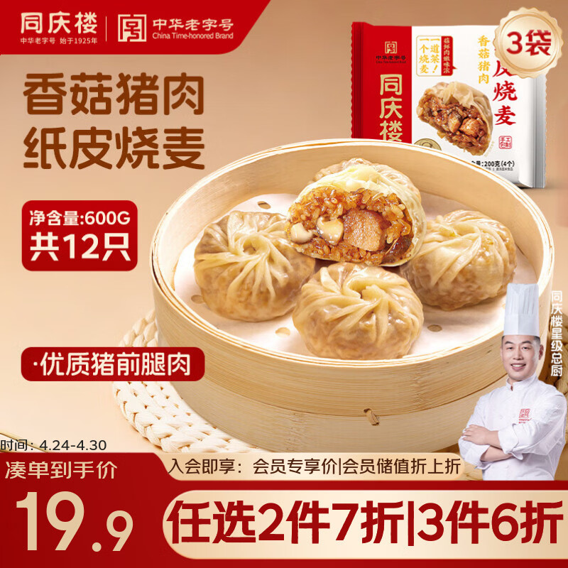同庆楼香菇猪肉纸皮烧麦200g*3袋 共12个 面点烧卖早餐半成品