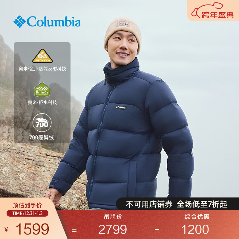 Columbia哥伦比亚户外男女拒水金点鹅绒700蓬保暖羽绒服WE9590 464 远山蓝 L (180/100A)